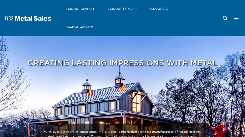 Key Highlights: Metal Sales is the nation’s largest manufacturer of metal roofing, wall, and building systems. We are the most awarded and highly recognized provider of metal ……